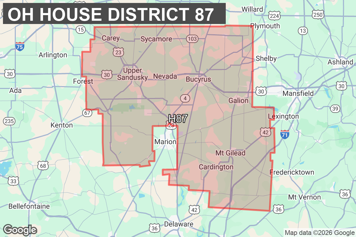 State Representative Riordan McClain is currently serving his fourth term as State Representative for the 87th Ohio House District, which includes all of Crawford, Morrow and Wyandot counties and a portion of Marion County. In addition to serving as a majority whip for the 136th General Assembly, McClain serves on the General Government, Small Business, Technology and Innovation, and Transportation committees.